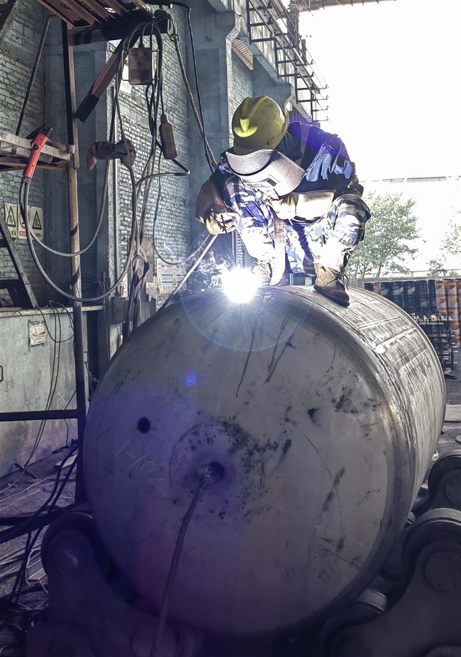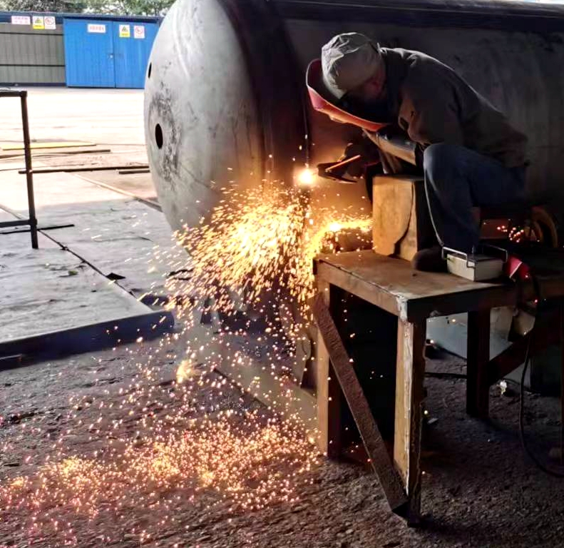 因節(jié)前承接的廣西柳鋼環(huán)保公司鋼渣廠1#廠房氣窗及3-11#柱屋面鋼結(jié)構(gòu)與彩瓦更換工程的鋼結(jié)構(gòu)預制加工、東莞市鵬錦機械科技有限公司15臺壓力容器制作需要在春節(jié)后交貨,壓力容器制造廠生產(chǎn)車間的施工人員、管理人員在大年初四就開始進入了緊張繁忙的工作狀態(tài)。焊接、打磨相互銜接,作業(yè)有序,全力推進設(shè)備趕制工作,現(xiàn)場好不熱鬧。工人們表示,能高質(zhì)量、高效率完成好制作任務,也是一種快樂。