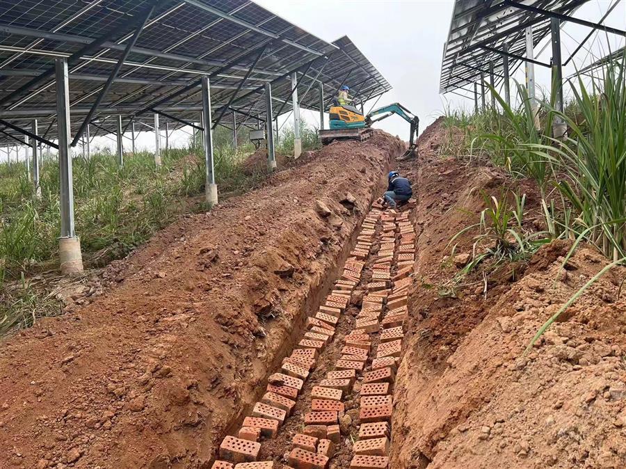 節(jié)后復(fù)工復(fù)產(chǎn)以來(lái),項(xiàng)目接地網(wǎng)開(kāi)挖敷設(shè)完成1235米,低壓電纜敷設(shè)完成1285米,光伏專(zhuān)用電纜敷設(shè)完成14760米,圍欄安裝1030米。