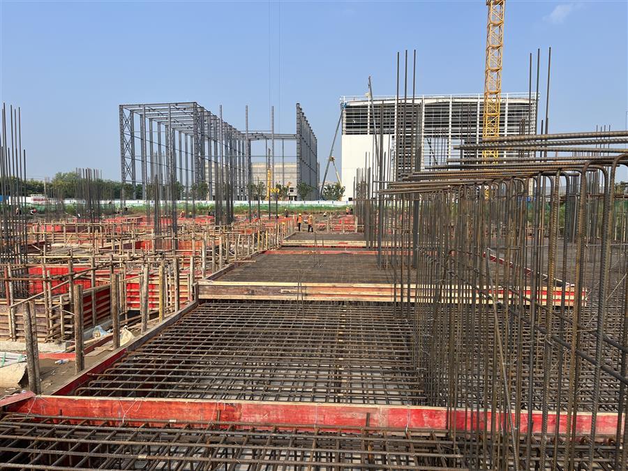 為確保項(xiàng)目建設(shè)順利開(kāi)展,項(xiàng)目部制定科學(xué)的施工方案,合理安排施工時(shí)間,認(rèn)真抓好安全生產(chǎn)工作,嚴(yán)把質(zhì)量關(guān)。目前,項(xiàng)目已完成了3#高標(biāo)庫(kù)基礎(chǔ)混凝土墊層、4#分揀中心及6#冷庫(kù)的 CFG 樁、2#分揀中心基礎(chǔ)混凝土墊層等施工內(nèi)容,2#高標(biāo)庫(kù)基礎(chǔ)擋墻鋼筋綁扎已完成100%,模板安裝已完成70%。