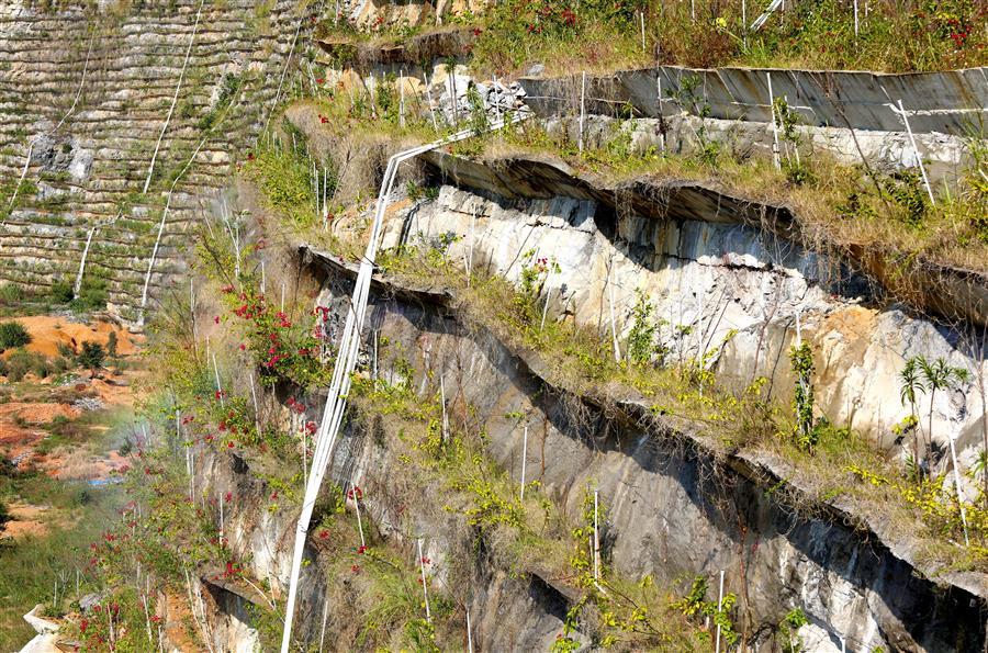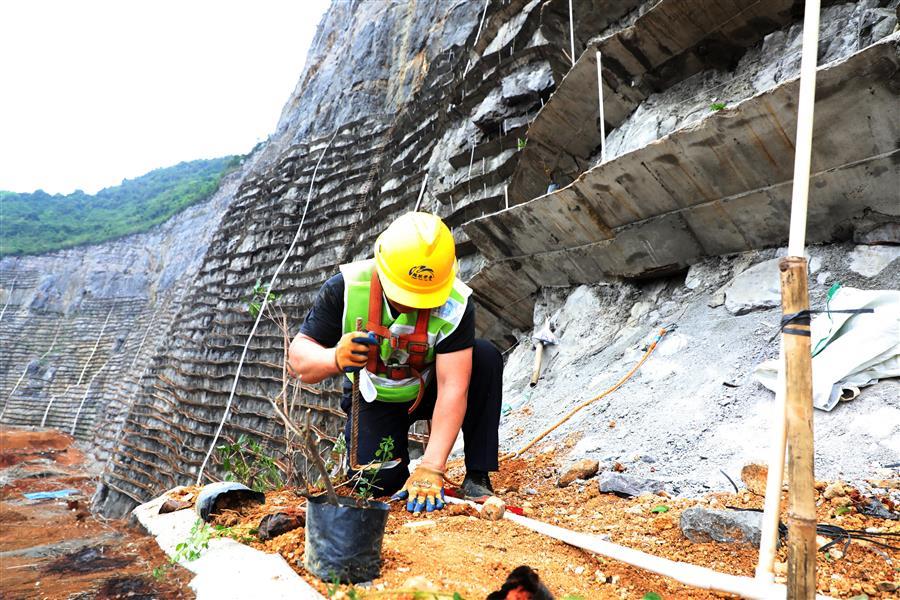 一直以來,公司積極踐行習總書記提出的“綠水青山就是金山銀山”的理念,致力于綠色發(fā)展,努力為柳州生態(tài)文明建設貢獻力量。2018年9月26日,樓梯山采石場山體復綠工程開工,采石場山體治理面積22.5萬平方米,施工采取在陡壁上布置擋土板,形成V形槽,回填泥土后種植紫薇、夾竹桃、爬墻虎、三角梅等進行綠化。