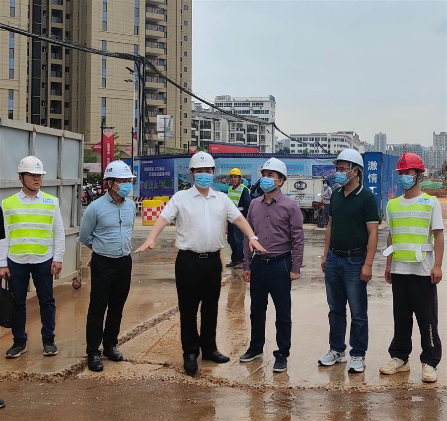 4月15日,冶建公司總經(jīng)理、黨委副書記蒙勝益到桂華分公司承建的南寧軌道交通5號線廣西大學(xué)站至廣西財經(jīng)學(xué)院(廣財區(qū)間)地下空間利用工程項目市政配套工程調(diào)研指導(dǎo)。
