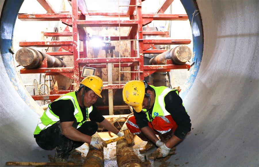 3月16日,在廣西壯族自治區(qū)柳州市柳北區(qū)濱江東路旁的勝利干渠金水路段改造工程現(xiàn)場,工人在井下施工作業(yè)。