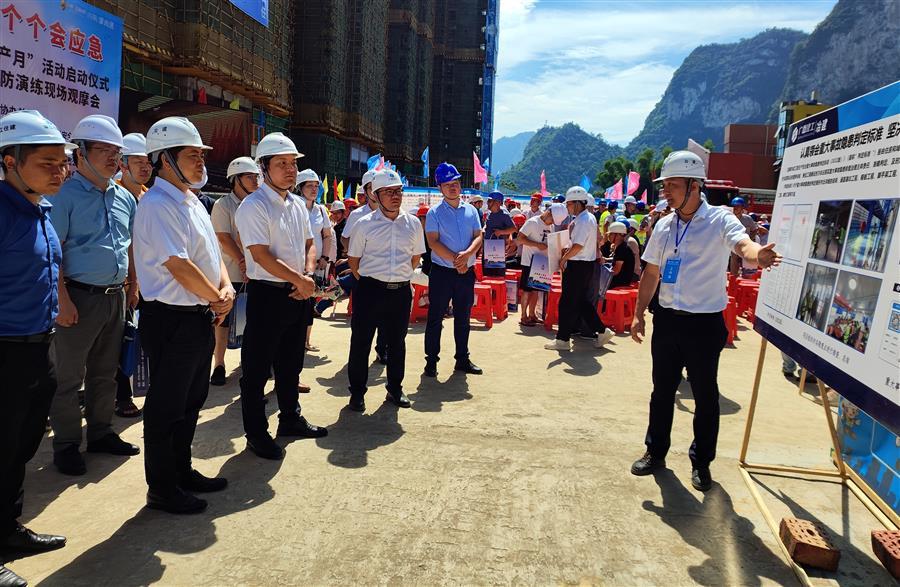 6月14日,河池市2023年“安全生產(chǎn)月”活動啟動儀式暨質(zhì)量安全標準化、消防演練現(xiàn)場觀摩會在冶建公司桂金分公司承建的河池?澳門國際城四期項目部舉辦。河池市住房和城鄉(xiāng)建設(shè)局黨組成員、副局長韋鵬致辭并宣布“安全生產(chǎn)月”活動啟動,冶建公司總經(jīng)理、黨委副書記蒙勝益參加并講話。觀摩會由河池市建設(shè)工程質(zhì)量安全監(jiān)督站副站長覃安納主持。