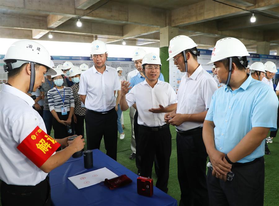 活動中,龍杏華首先表示,此次觀摩會是來賓市近年來舉辦過水平最高的一次觀摩會,感謝廣西建工冶建公司以及現(xiàn)場管理人員的努力付出,大家秉承工匠精神建設(shè)出了工程質(zhì)量優(yōu)、安全文明標(biāo)準(zhǔn)高的示范項(xiàng)目。隨后,龍杏華還宣講了習(xí)近平總書記關(guān)于安全生產(chǎn)的重要論述,并對下一步工作提出三點(diǎn)要求。一是高度重視,強(qiáng)化學(xué)習(xí),提高安全生產(chǎn)理論基礎(chǔ)。全市住建系統(tǒng)、各建筑企業(yè)要扎實(shí)開展安全生產(chǎn)警示教育學(xué)習(xí)和典型事故案例警示宣講活動,督促行業(yè)從業(yè)人員深刻汲取事故教訓(xùn),提高安全防范意識、風(fēng)險辨識能力和應(yīng)急處置能力,督促企業(yè)相關(guān)責(zé)任人強(qiáng)化安全生產(chǎn)紅線意識和底線意識,確保安全生產(chǎn)。二是深刻吸取事故教訓(xùn),全面做好建筑施工安全生產(chǎn)工作。要強(qiáng)化建筑施工預(yù)防坍塌、防墜落事故專項(xiàng)檢查;強(qiáng)化企業(yè)安全生產(chǎn)主體責(zé)任落實(shí);強(qiáng)化建設(shè)工程行業(yè)主管部門監(jiān)管責(zé)任落實(shí);強(qiáng)化對建筑施工事故依法嚴(yán)肅查處;強(qiáng)化安全生產(chǎn)和文明施工宣傳教育培訓(xùn);切實(shí)做好汛期和夏季消防安全工作。三是繼續(xù)推進(jìn)“一金七制”,全面做好建筑領(lǐng)域治欠保支各項(xiàng)工作。要繼續(xù)推進(jìn)“桂建通”平臺應(yīng)用;全面梳理排查,健全完善在建工程項(xiàng)目臺賬;要健全根治機(jī)制,加強(qiáng)部門協(xié)同配合。