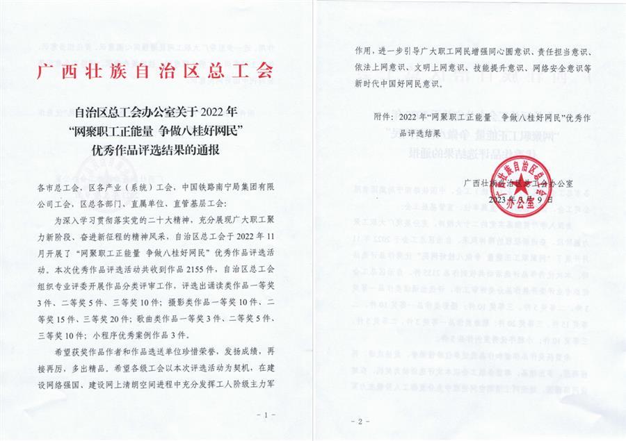 近日,自治區(qū)總工會公布了2022年“網(wǎng)聚職工正能 爭做八桂好網(wǎng)民”優(yōu)秀作品評選結(jié)果,公司職工攝影作品《焊花飛濺鑄匠心》榮獲一等獎,《組圖:爬“天梯”去植綠》榮獲三等獎。